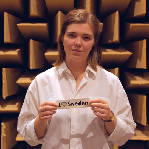 Pour cette occasion elle a pu avoir accès à un endroit vraiment exceptionnel, la chambre anéchoïque de l'Université de technologie Chalmers, une pièce totalement exempte d'écho et de réverbération.